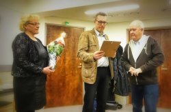 Syyskokouksessa kunniajäsenyyden, Maija-Liisa Luopajärvi, Arja Myllykangas ja Seppo Kinnunen, johdosta diplomit ja ”kukat”.