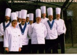 | 1996 Vuoden 1996 helmikuussa oltiin joukolla liittopäivillä Saariselän mahtavassa luonnossa. Siellä saivat Gordon Bleu tunnuksensa mm. Seppo Kinnunen ja Jens Sandström. Yhdistyksen talkoohenki oli parhaimmillaan ruokittaessa kahdeksansataa Lions Clubilaista. Vuoden lopussa jäseniä oli 48, joista kannatusjäseniä 11. Vuosi oli työntäyteinen myös vuoden 1998 liittopäivien valmistelujen vuoksi. Puheenjohtajana toimi Seppo Kinnunen ja sihteerinä Kaj Lax. 1997 Vuonna 1997 jäseniä yhdistyksessä oli 50, joista kannatusjäseniä 14. Puheenjohtana S.Kinnunen ja sihteerinä K.Lax. Vuoden aikana tehtiin messumatka Finresta messuille lahteen ja tutustumiskäynti Atri OYJ:n tiloihin Nurmossa. Vuoden kokki reseptejä testattiin Silveriassa ja Savonlinnassa käytiin NKF:n kongressissa. Perinteiseen tapaan osallistuttiin kalastuksen päivään. |